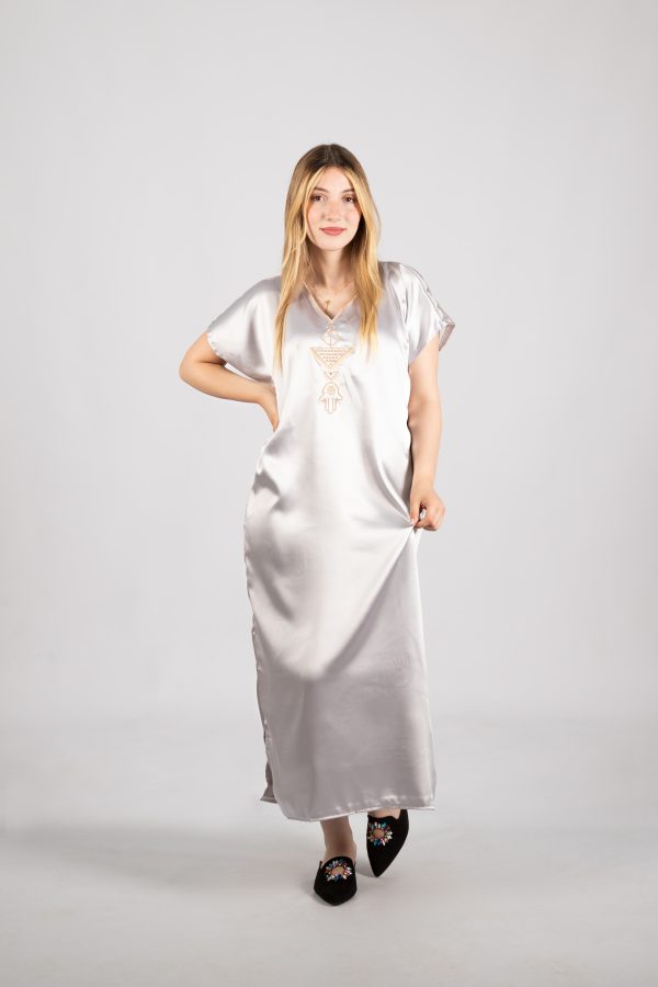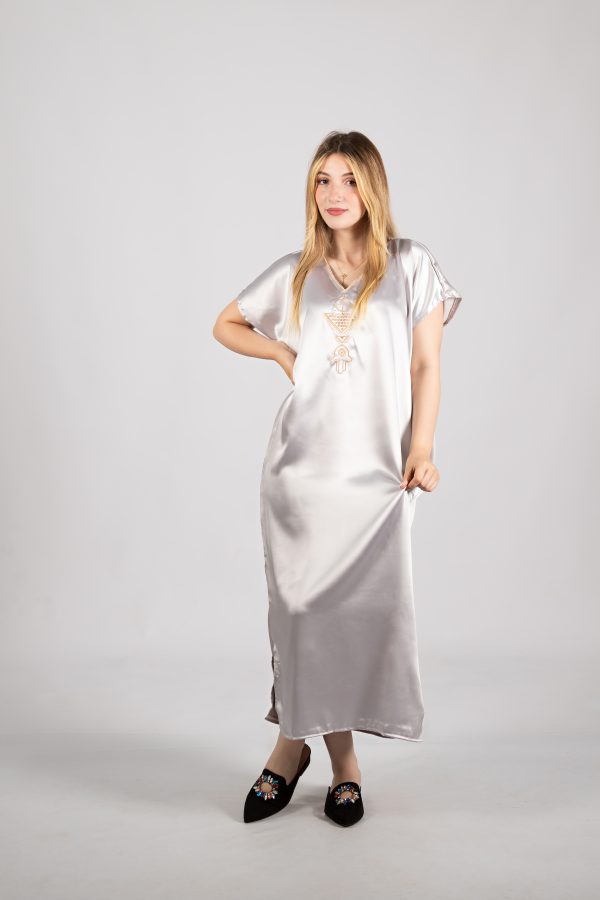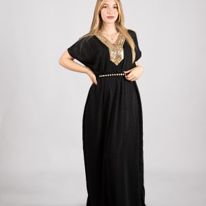 « Cette robe , allie élégance et tradition. Son tissu légèrement brillant lui confère une allure sophistiquée, tandis que les détails berbères ajoutent une touche unique et authentique. Un vêtement qui marie subtilement le raffinement à l’héritage traditionnel berbère, parfait pour celles en quête d’un style distingué et original. » 🌟